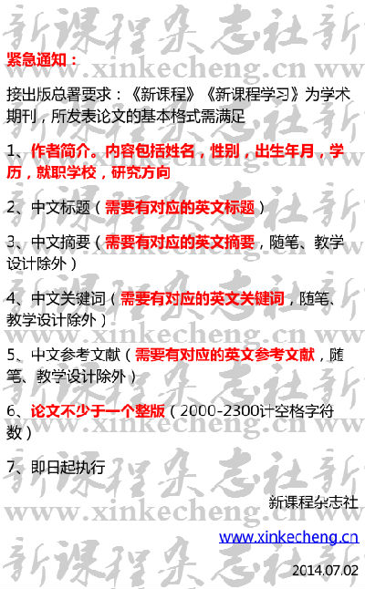 紧急通知:接出版总署要求,《新课程》《新课程学习》为学术期刊,所发表论文的基本格式需满足: